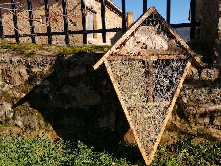 Por ello, durante el taller construimos con madera cuatro hoteles de insectos y fueron rellenadosde diversos materiales en función de los diferentes grupos de insectos a albergar. Dichas estructuras quedaron instaladas en las zonas verdes adyacentes al centro para que el alumnado pueda estudiar detenidamente cómo los insectos van colonizando dichas estructuras bien para cobijarse bien para reproducirse.